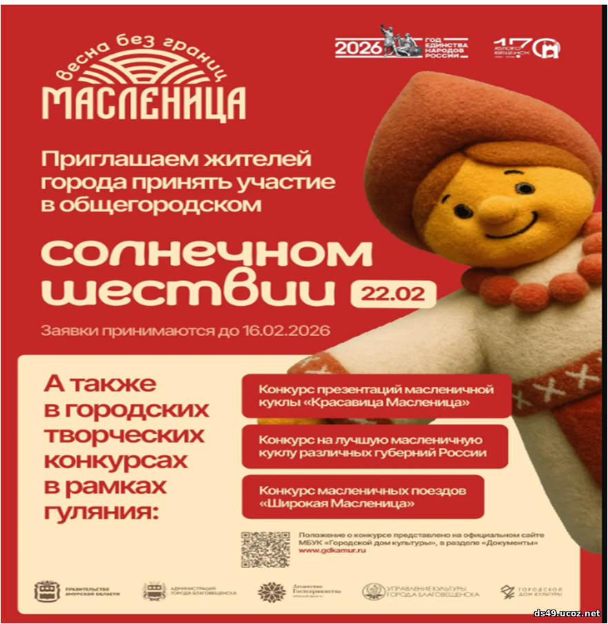 22 февраля 2026 года по набережной Амура пройдёт грандиозное «Солнечное шествие». Это не просто зрелище — это ваш шанс проявить себя, объединить друзей и близких, воплотить самые смелые творческие идеи.